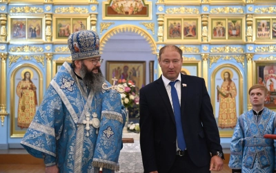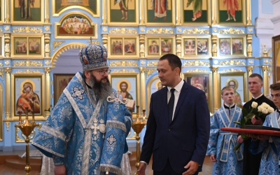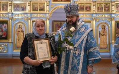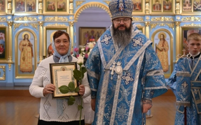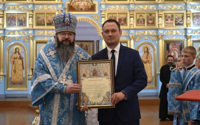 Затем архипастырь вручил епархиальные награды. Архиерейской грамотой награжден глава Демидовского муниципального округа Сергей Владимирович Николаев. Благодарственные грамоты вручены главному специалисту отдела по экономическому развитию, имущественным и земельным отношениям администрации Демидовского муниципального округа Юлии Леонидовне Гуровой и прихожанкам Успенского собора Татьяне Ивановне Шевяковой, Светлане Иннокентьевне Афанасьевой и Татьяне Александровне Морозовой.