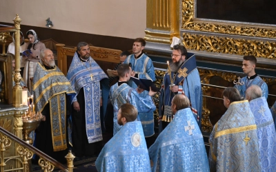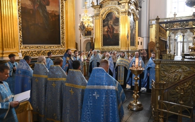 29 июля 2025 года митрополит Смоленский и Дорогобужский Исидор совершил вечернее богослужение с чтением акафиста Пресвятой Богородице у Смоленской иконы Божией Матери Одигитрии в Успенском кафедральном соборе города Смоленска.