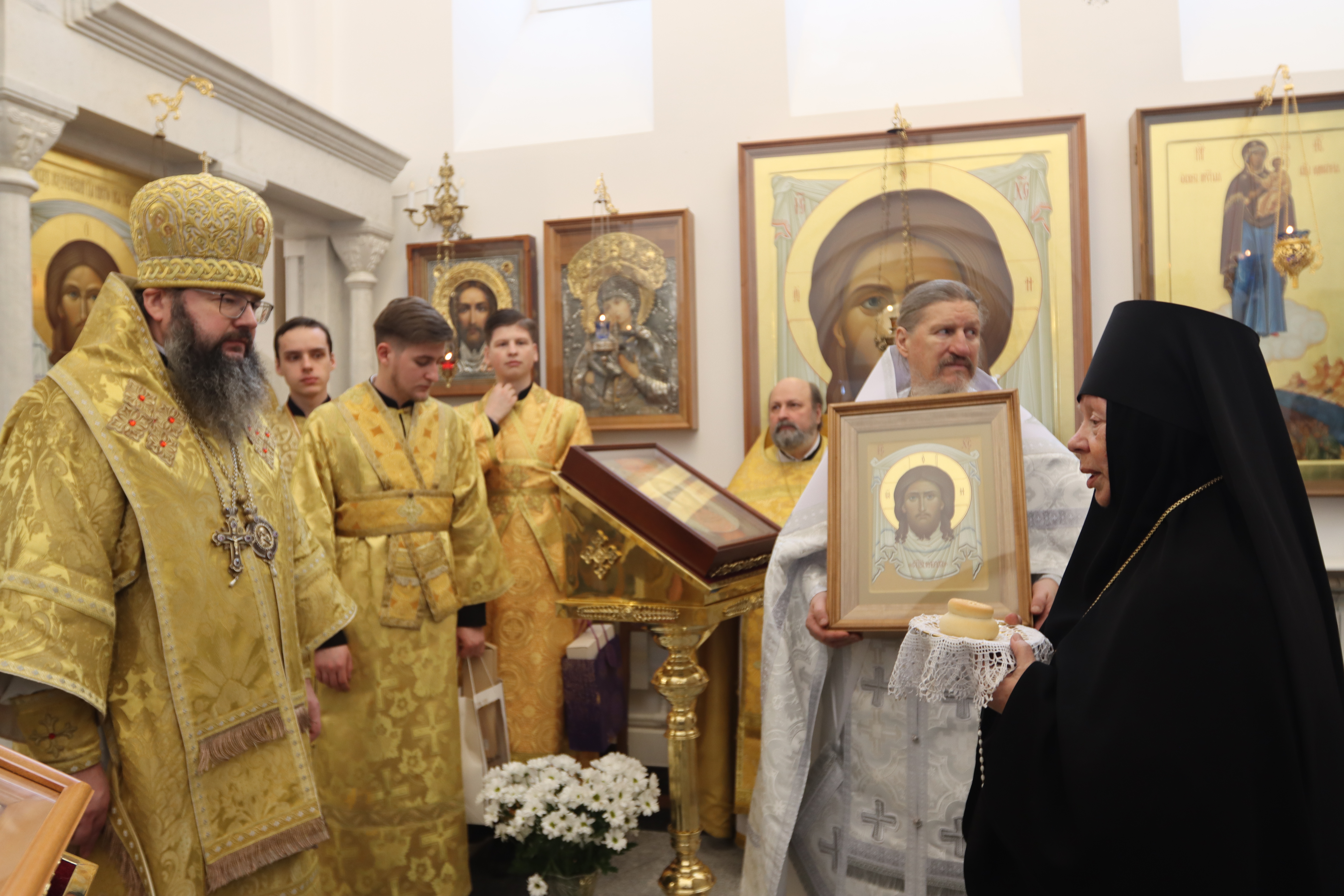 За богослужением молились настоятельница Спасо-Богородицкого Одигитриевского женского монастыря игумения Ангелина (Нестерова), прихожане храма, паломники.