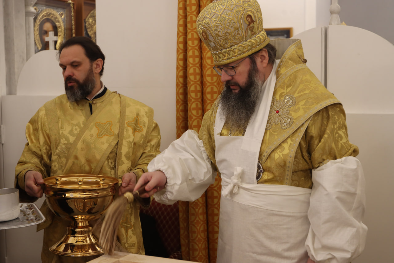 Высокопреосвященнейшему Владыке сослужили секретарь Вяземского епархиального управления иерей Олег Переверзев, клирики Смоленской митрополии.