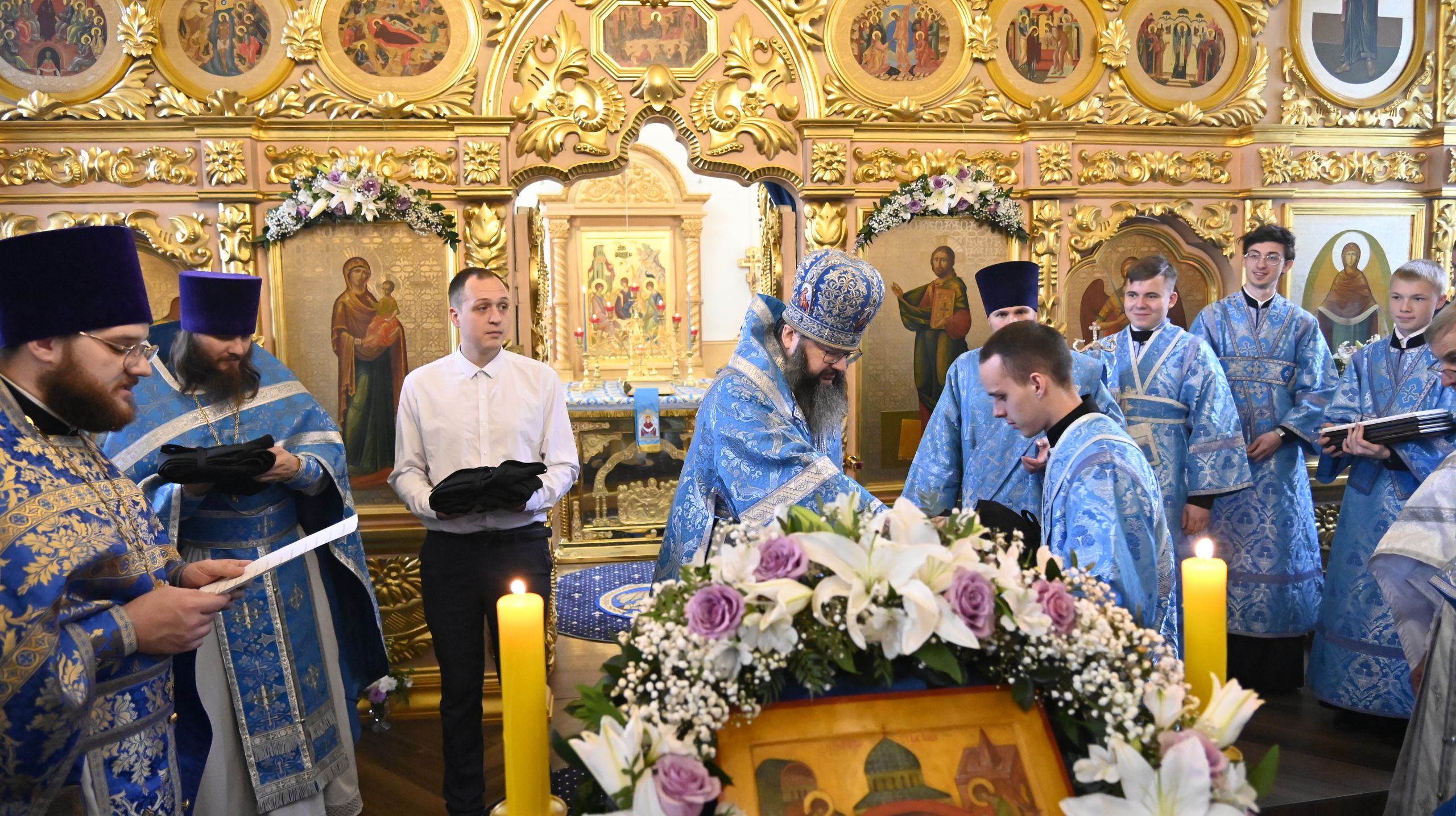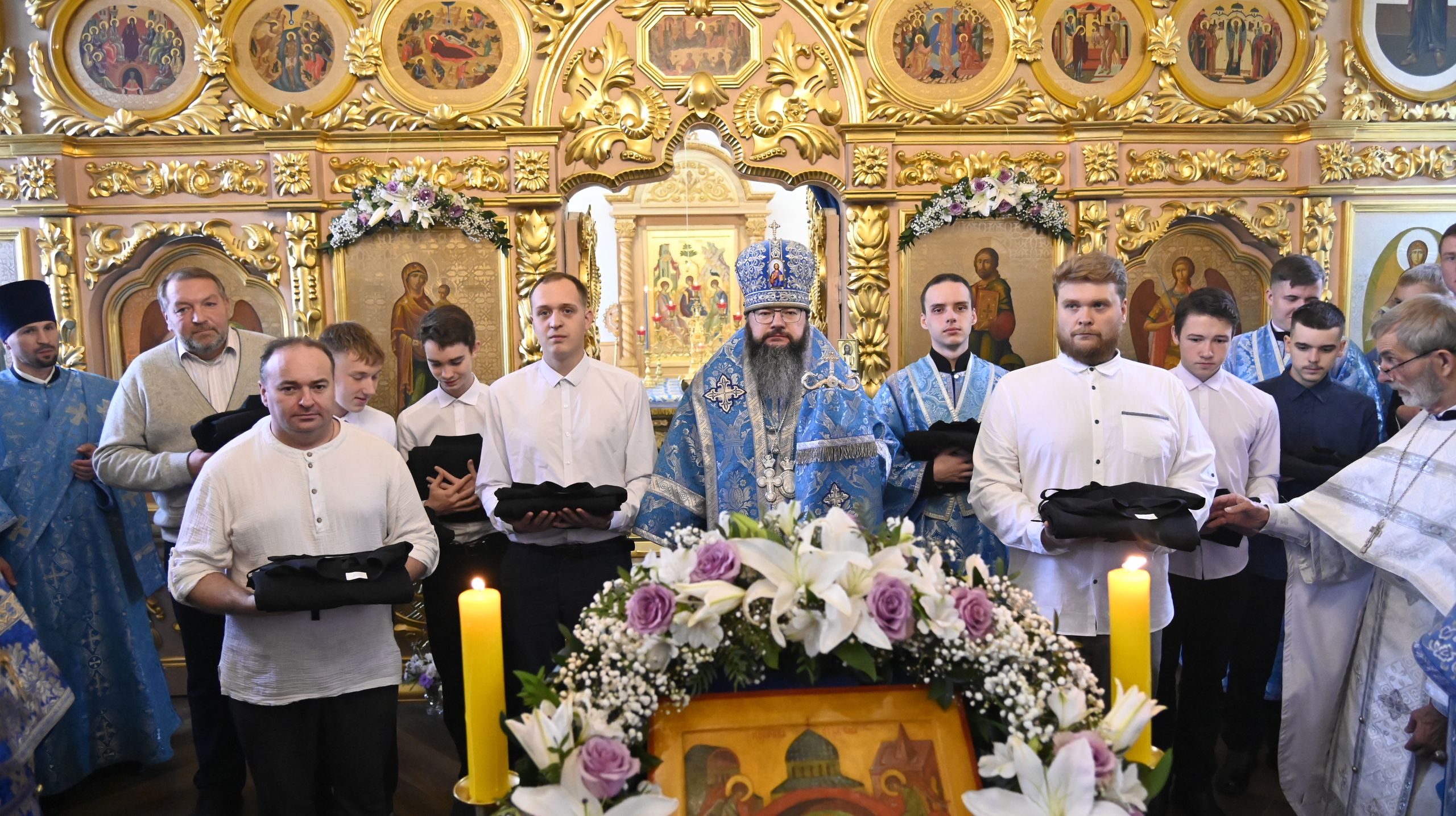 За богослужением было совершена иерейская хиротония: диакон Георгий Шавлов рукоположен во иерея, студент семинарии Станислав Эскеров – во диаконы, студент семинарии Василий Ляченков – во иподиаконы.