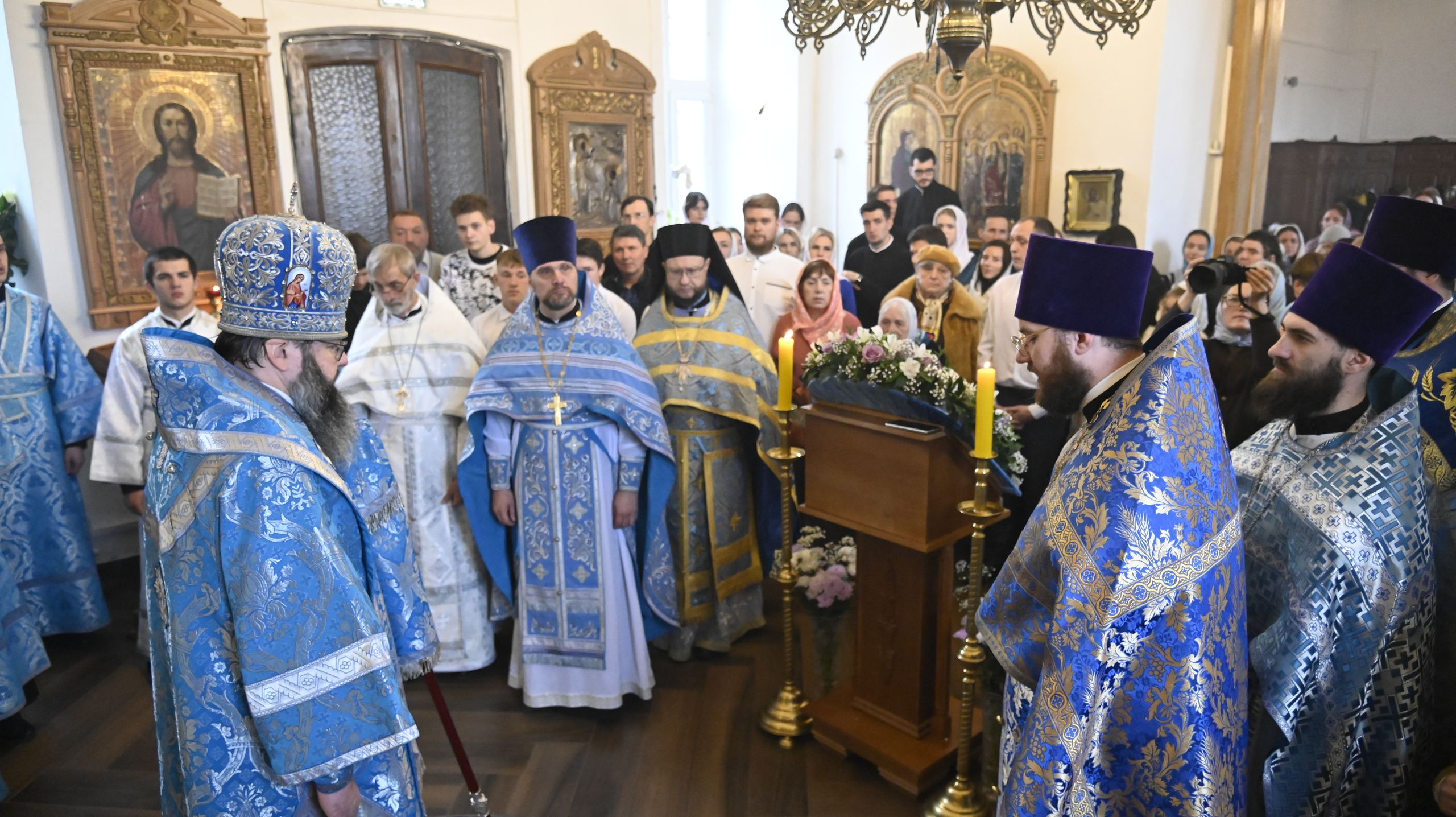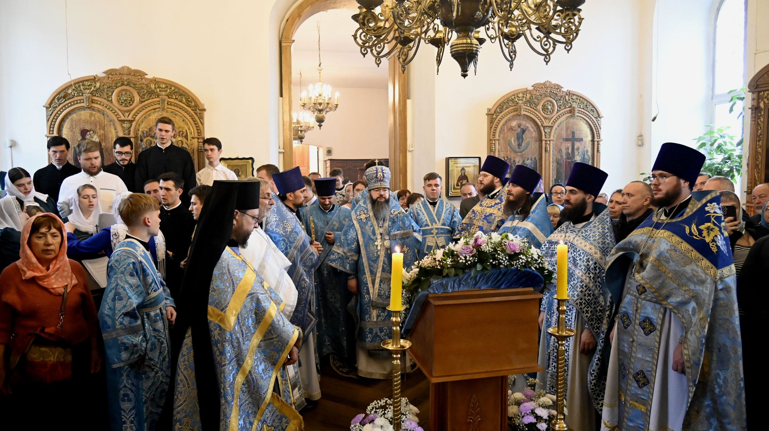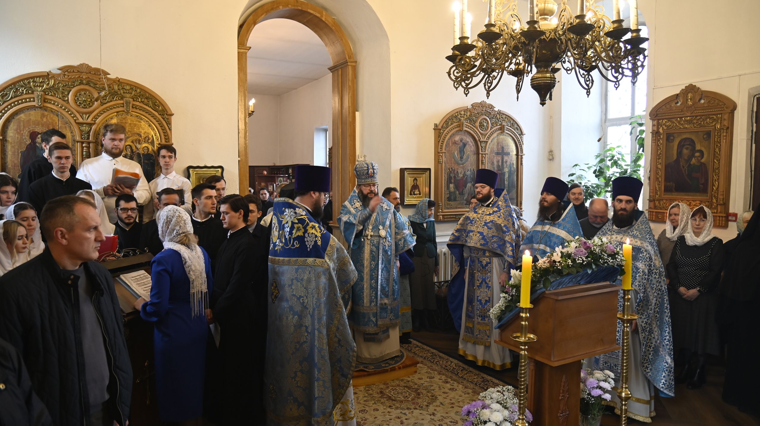 Во вторник 14 октября 2025 года, в великий праздник Покрова Пресвятой Владычицы нашей Богородицы и Приснодевы Марии митрополит Смоленский и Дорогобужский Исидор возглавил Божественную литургию Покровском храме Смоленской Православной Духовной семинарии города Смоленска.