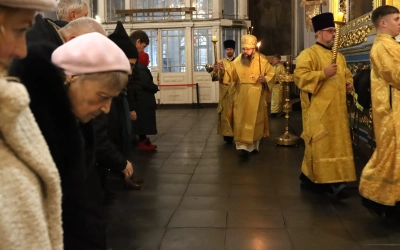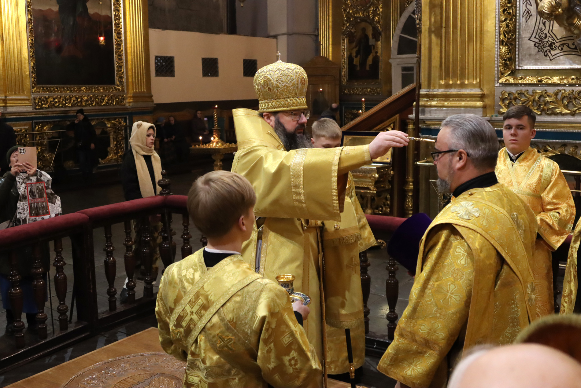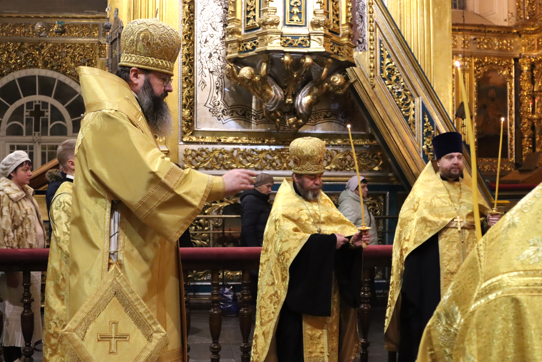 29 ноября 2025 года, в канун Недели 25-й по Пятидесятнице, митрополит Смоленский и Дорогобужский Исидор совершил Всенощное бдение в Успенском кафедральном соборе города Смоленска.