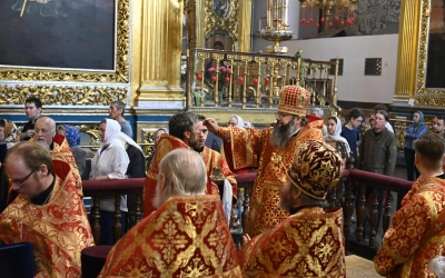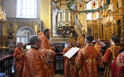 Его Высокопреосвященству сослужили секретарь Смоленского епархиального управления, настоятель кафедрального храма иерей Владислав Баган и клирики собора.