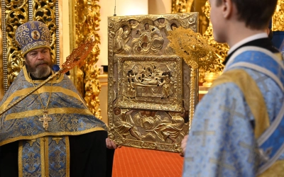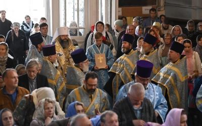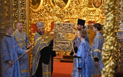 27 августа 2025 года, в канун двунадесятого праздника Успения Пресвятой Владычицы нашей Богородицы и Приснодевы Марии, митрополит Смоленский и Дорогобужский Исидор совершил Всенощное бдение в Успенском кафедральном соборе города Смоленска.