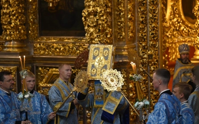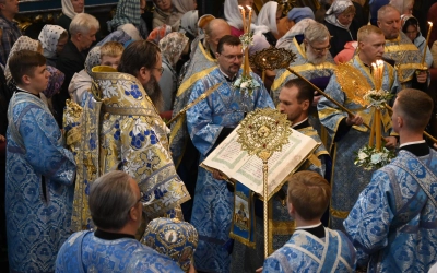 «"Благословенна ты в женах, и благословен плод чрева твоего" (Лк. 1, 28), – так свидетельствовал архангел Гавриил Пречистой Деве, той, которая " в рождестве девство сохранила еси, во Успении мира не оставила еси" (см. Тропарь праздника Успения Пресвятой Богородицы). Помолимся и мы, дорогие братья и сестры, нашей Заступнице Небесной, нашей Покровительнице, нашей Одигитрии, указующей нам путь в Царствие Небесное. Аминь. С праздником всех вас!».