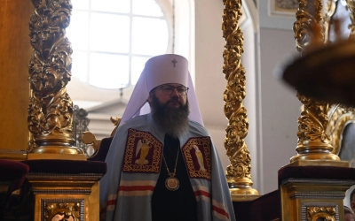 После чтения Святого Евангелия архипастырь обратился к молящимся со словами проповеди: