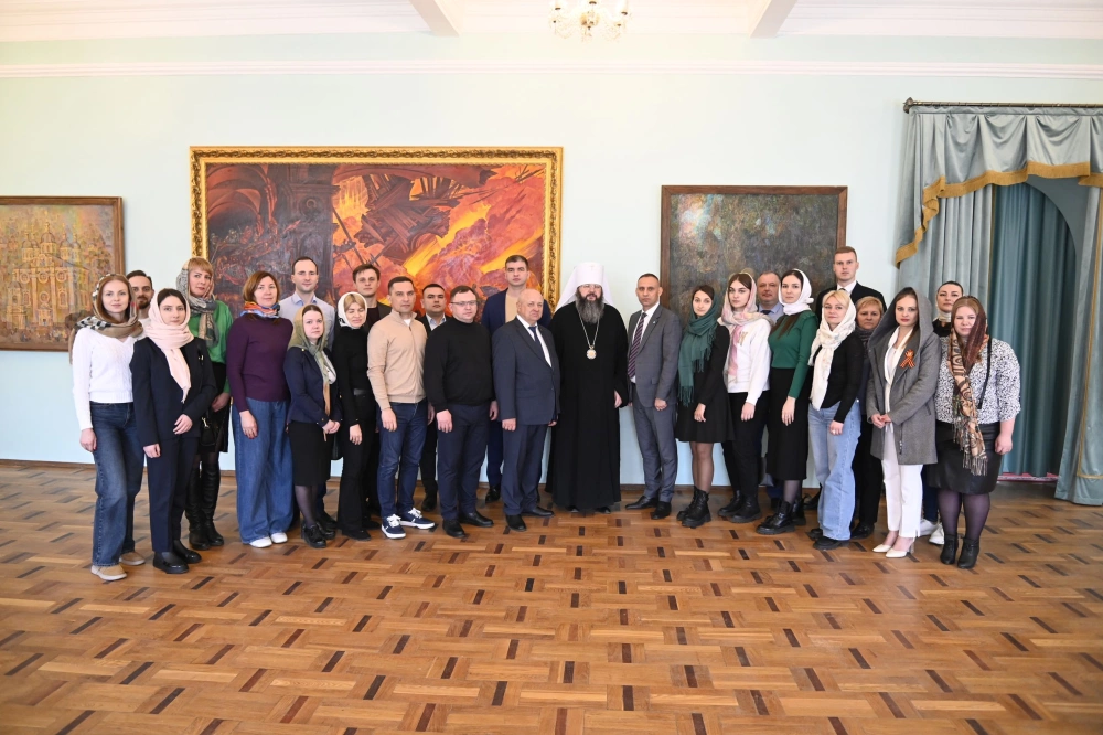 Затем в Тронном зале Смоленской епархии состоялась встреча с Главой Смоленской митрополии митрополитом Смоленский и Дорогобужским Исидором.