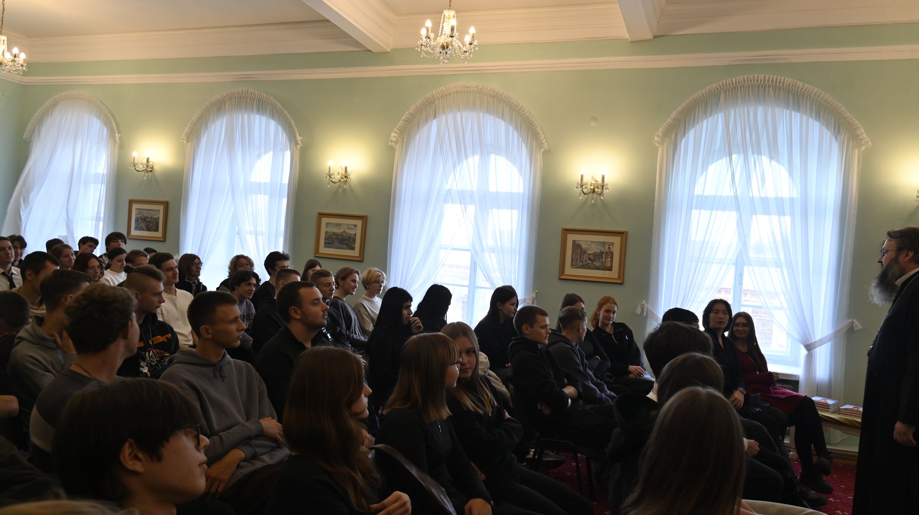 30 сентября 2025 года в Тронном зале Смоленского епархиального управления состоялась встреча Главы Смоленской митрополии митрополита Смоленского и Дорогобужского Исидора со студентами смоленских вузов.