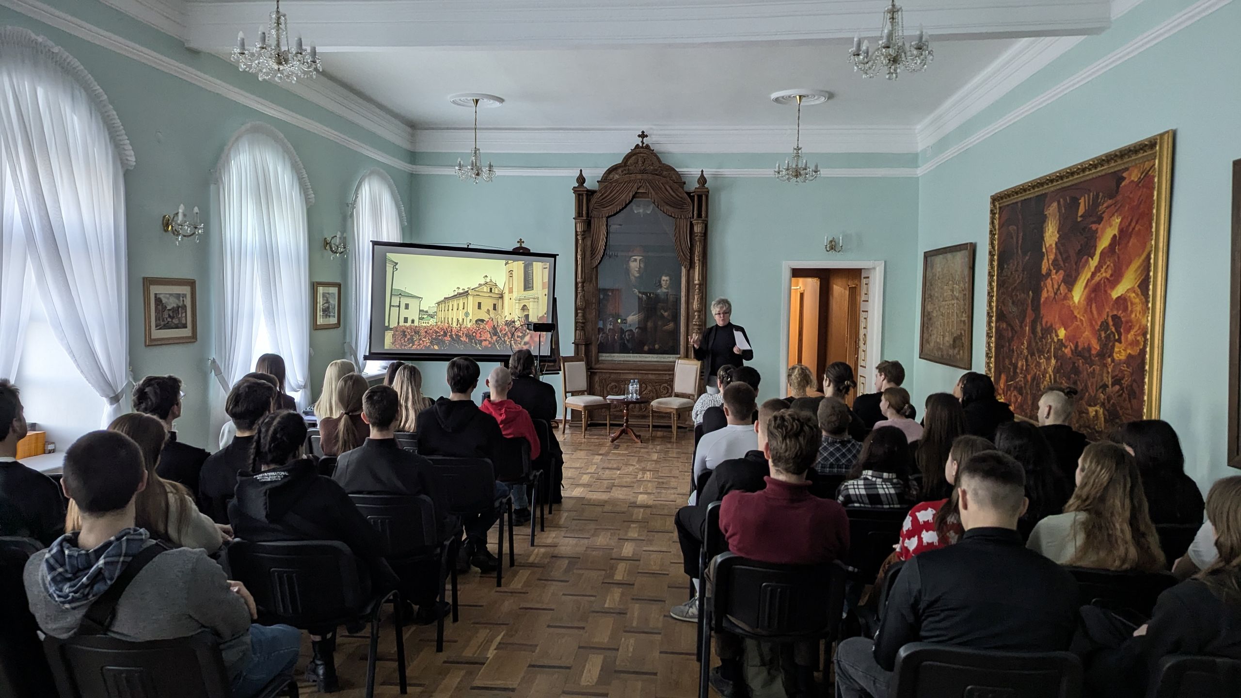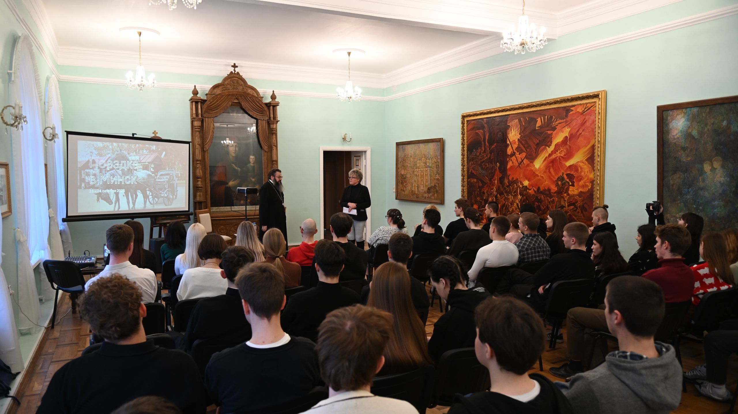 После вступительного слова были представлены фотоматериалы и видео-рассказы по итогам состоявших поездок для участников «Ценностный код молодежи 2.0: Одна война, один народ» в Санкт-Петербург (2–3 октября) и Минск (23–24 октября). Студенты вновь увидели ключевые места памяти: стрелку Васильевского острова и Пискарёвское мемориальное кладбище, «Остров слёз» в Минске, музей узников Шталага-352, Всехсвятский храм-памятник, мемориальный комплекс «Хатынь» и поделились впечатлениями, оставшимися после поездок.