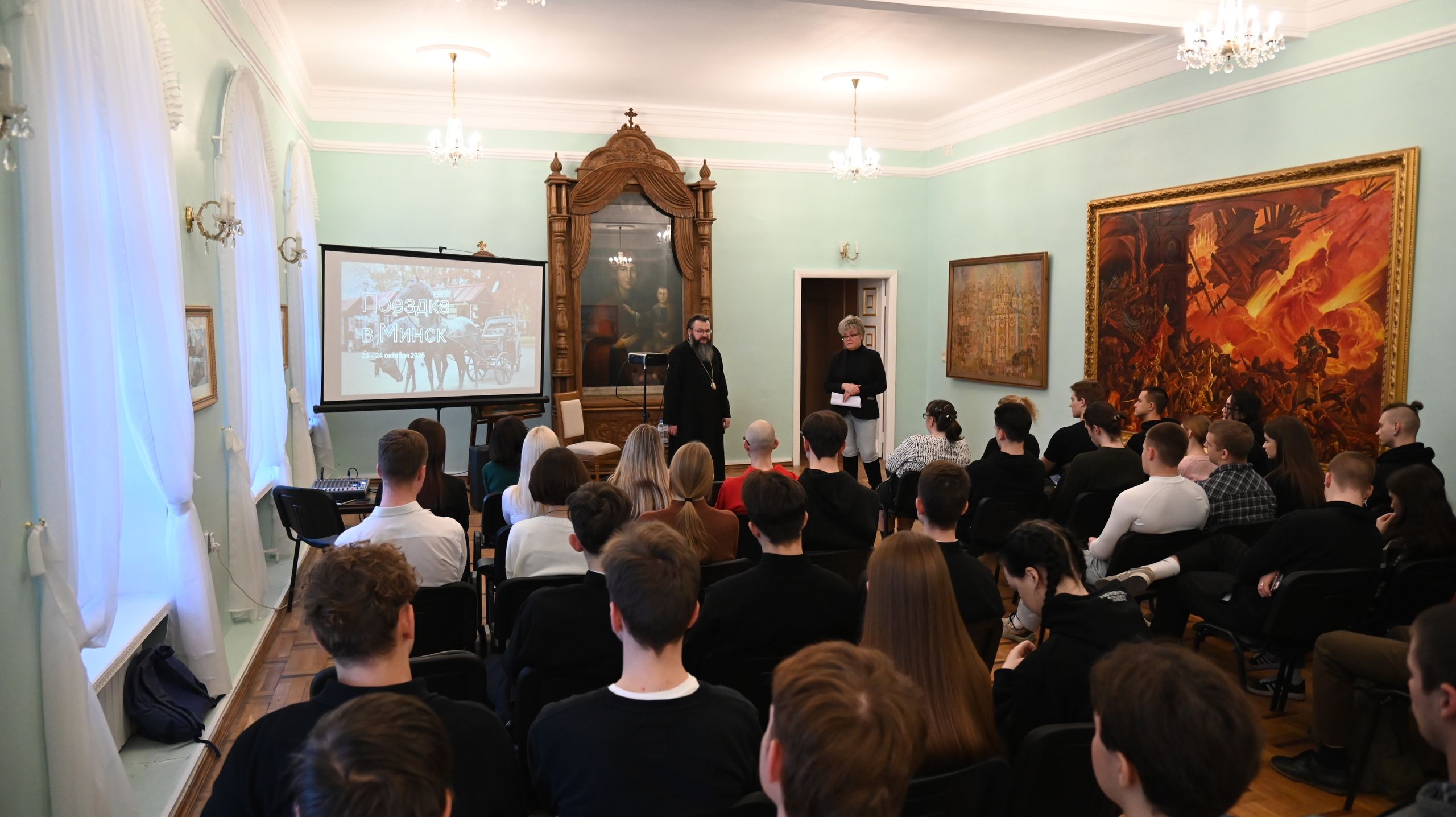 Вместе со студентами на встрече присутствовала помощник Епархиального архиерея, заместитель руководителя Отдела Смоленской епархии по взаимоотношениям Церкви с обществом и СМИ Мария Сергеевна Жукова.