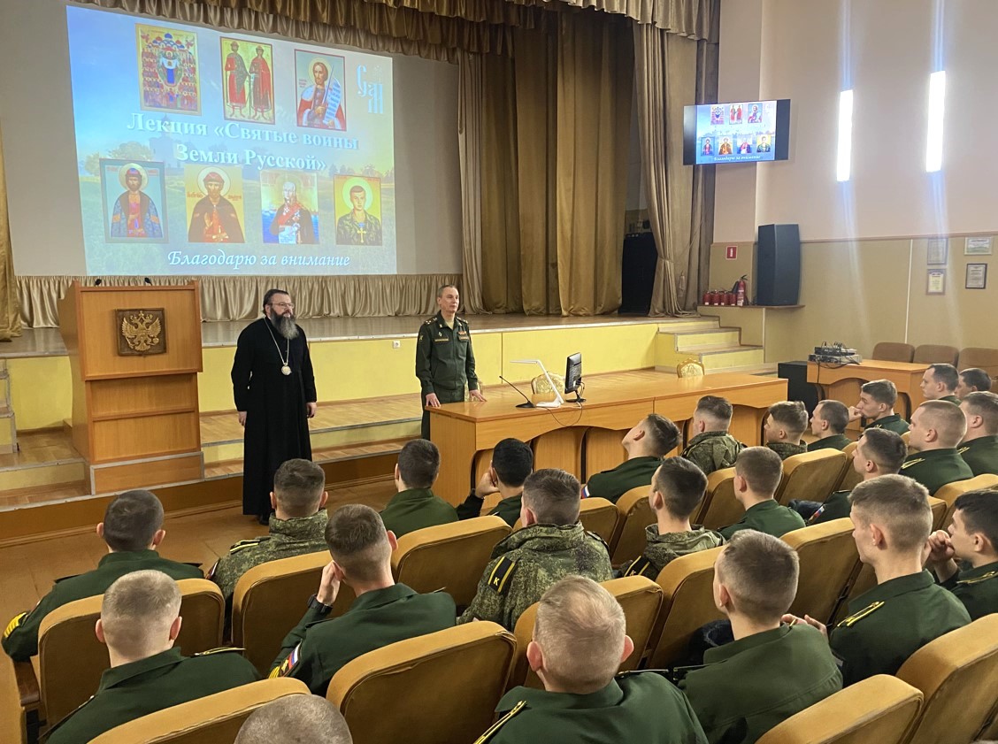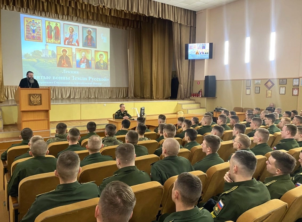 Архипастырь рассказал об истории подвигов русских воинов, которые причислены Святой Церковью к лику святых, отметив особо почитаемых на Смоленской земле и в России в целом. Владыка Исидор остановился на именах первых русских святых - князьях Борисе и Глебе, рассказал о феномене личности святого благоверного великого князя Александра Невского, мученике Меркурии Смоленском, князе Димитрии Донском, воине Феодоре Фёдоровиче Ушакове. Говоря о великих полководцах России, архипастырь рассказал об Александре Васильевиче Суворове – одном из самых выдающихся военных гениев не только России, но и всего мира. Также в лекции архипастырь рассказал о нашем современнике воине Евгении Родионове.