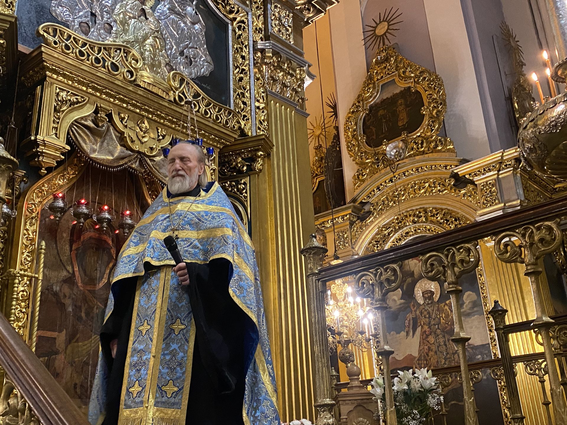 По завершении акафиста клирик Успенского собора протоиерей Александр Мельничук обратился к молящимся с проповедью.