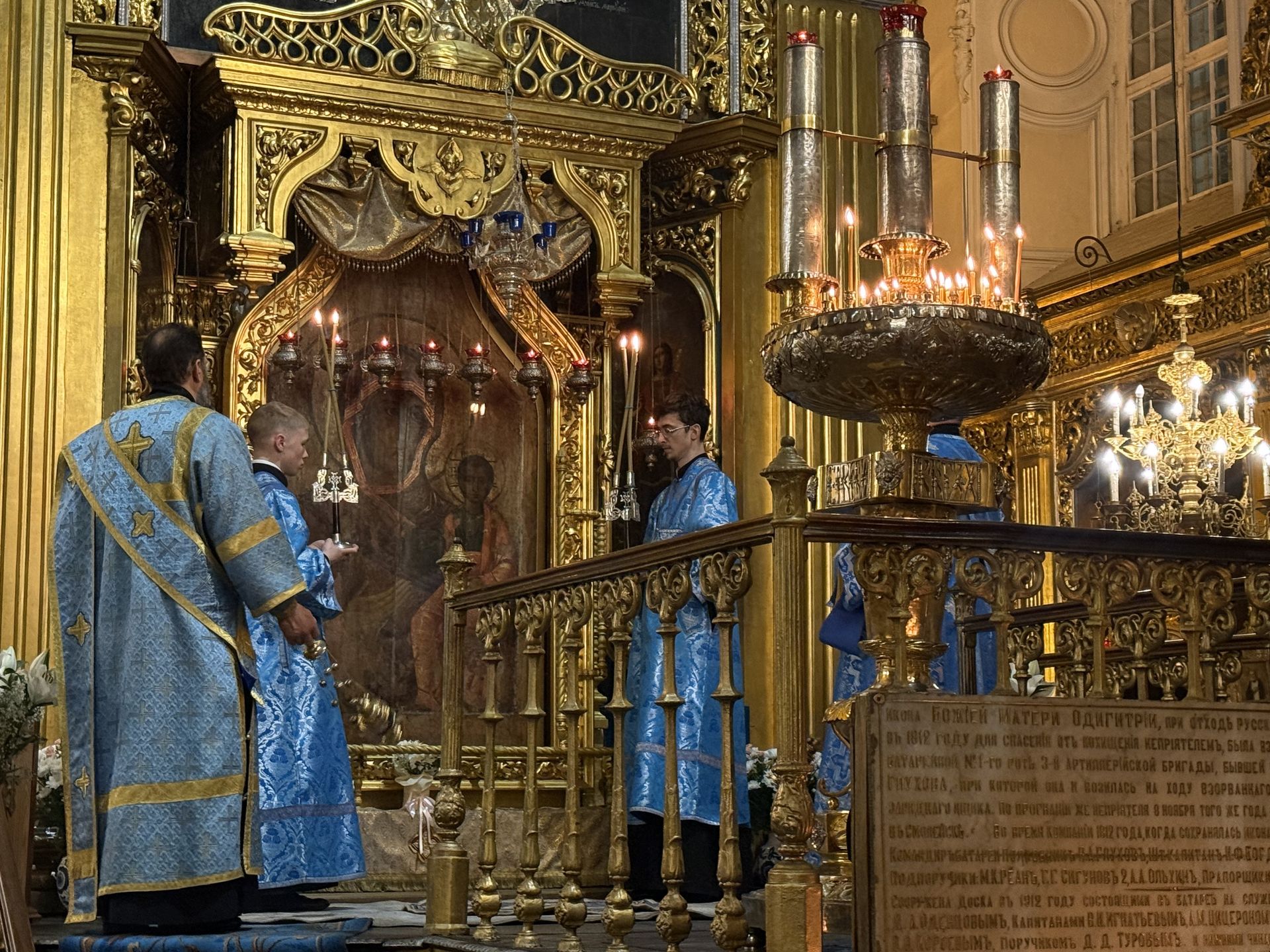 25 ноября 2025 года митрополит Смоленский и Дорогобужский Исидор и митрополит Ставропольский и Невинномысский Кирилл совершили вечернее богослужение с чтением акафиста Пресвятой Богородице у Смоленской иконы Божией Матери Одигитрии в Успенском кафедральном соборе города Смоленска.