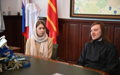 Ян и Ангелина испросили архипастырского благословения у митрополита Смоленского и Дорогобужского Исидора на брак, а также спросили архипастырского совета по созданию крепкой православной семьи.