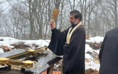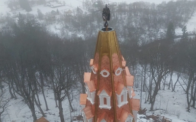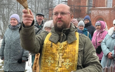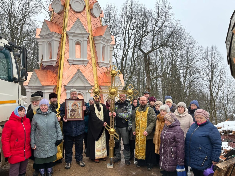 28 декабря 2024 года по благословению митрополита Смоленского и Дорогобужского Исидора, благочинный Сычевского округа, митрофорный протоиерей Анатолий Чайкин вместе с духовенством благочиния совершили освящение накупольного креста и купола колокольни Тихвинского храма в селе Высокое.