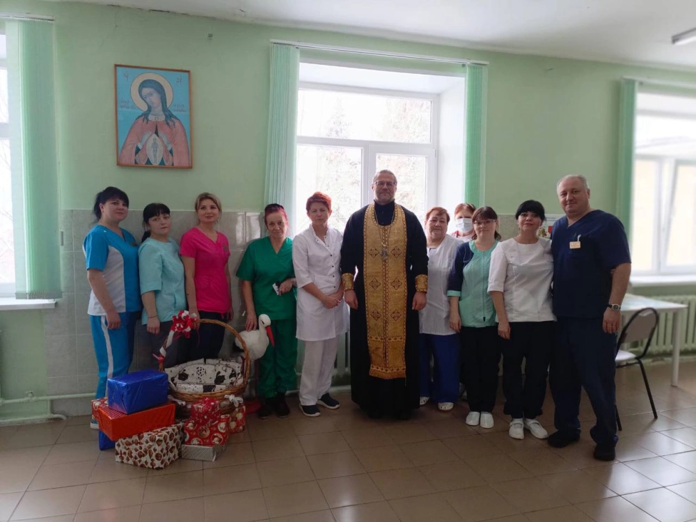 По завершении молебна священник окропил все помещения, а также призвал на врачей и рожениц Божие благословение.