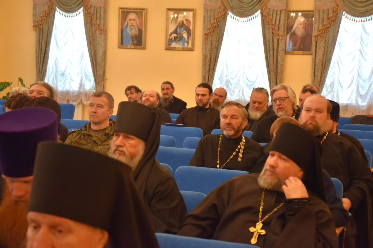26 декабря 2025 года в актовом зале Вяземского епархиального управления под председательством епископа Вяземского и Гагаринского состоялось ежегодное Епархиальное собрание духовенства Вяземской епархии, которое открылось пением молитвы «Царю Небесный».