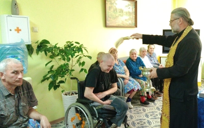11 сентября 2025 года, в день Усекновения главы Пророка, Предтечи и Крестителя Господня Иоанна, благочинный Вяземского округа протоиерей Валерий Калинин после Божественной литургии и молебна о трезвении в храме Преображения Господня г. Вязьмы посетил СОГБУ "Вяземский интернат для престарелых и инвалидов", где совершил молебен и провел беседу о трезвости.