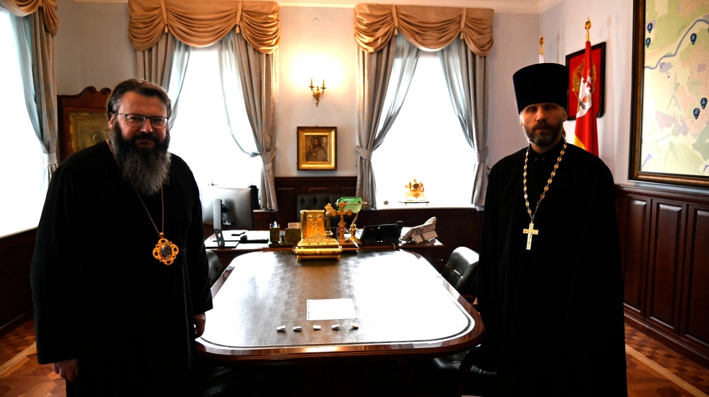 17 апреля 2025 года в Смоленском епархиальном управлении митрополит Смоленский и Дорогобужский Исидор передал частицы мощей святых угодников Божиих настоятелю храма в честь святых равноапостольных Кирилла и Мефодия города Велижа иерею Владиславу Баринову.