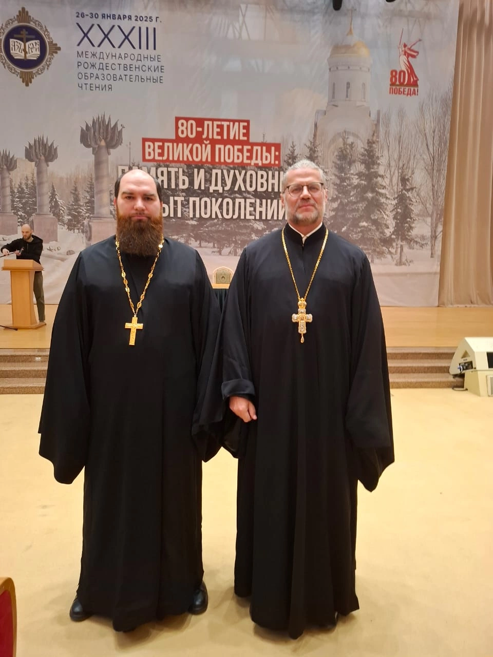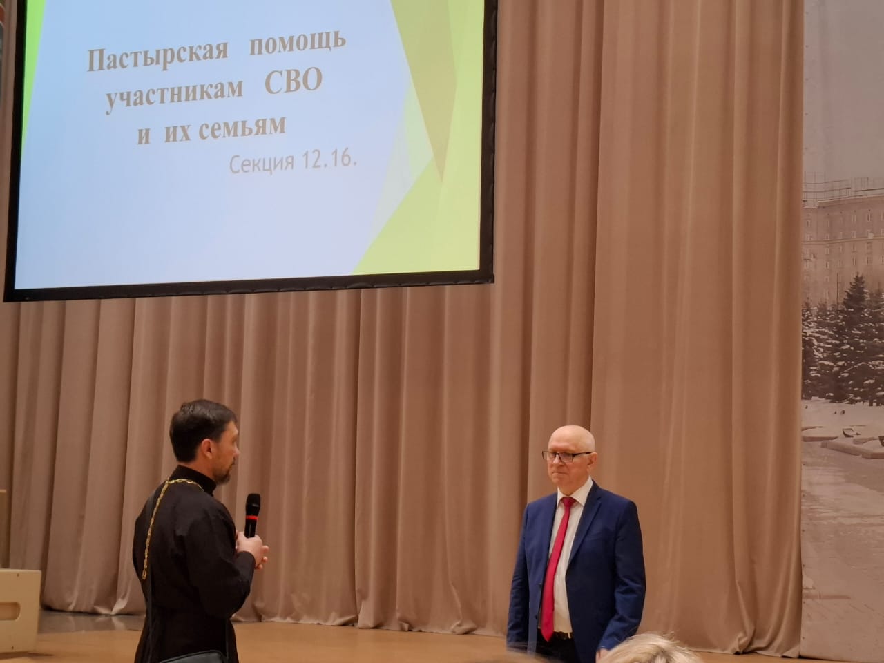 30 января 2025 года в Храме Христа Спасителя в зале Церковных Соборов в рамках XXXIII Международных Образовательных Рождественских Чтений состоялась секция "Помощь военнослужащим-участникам СВО и членам их семей". От Вяземской епархии в работе секции принял участие ответственный за пастырское окормление участников СВО и членов их семей протоиерей Валерий Калинин.