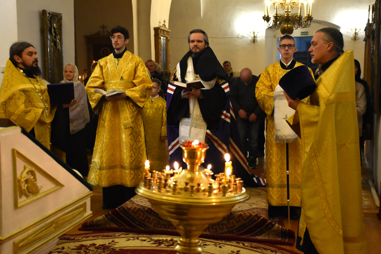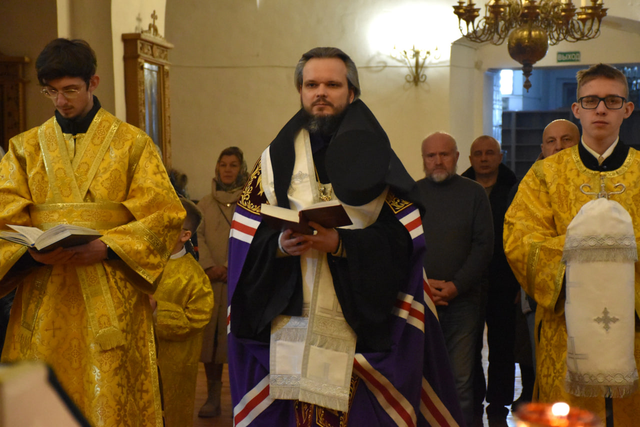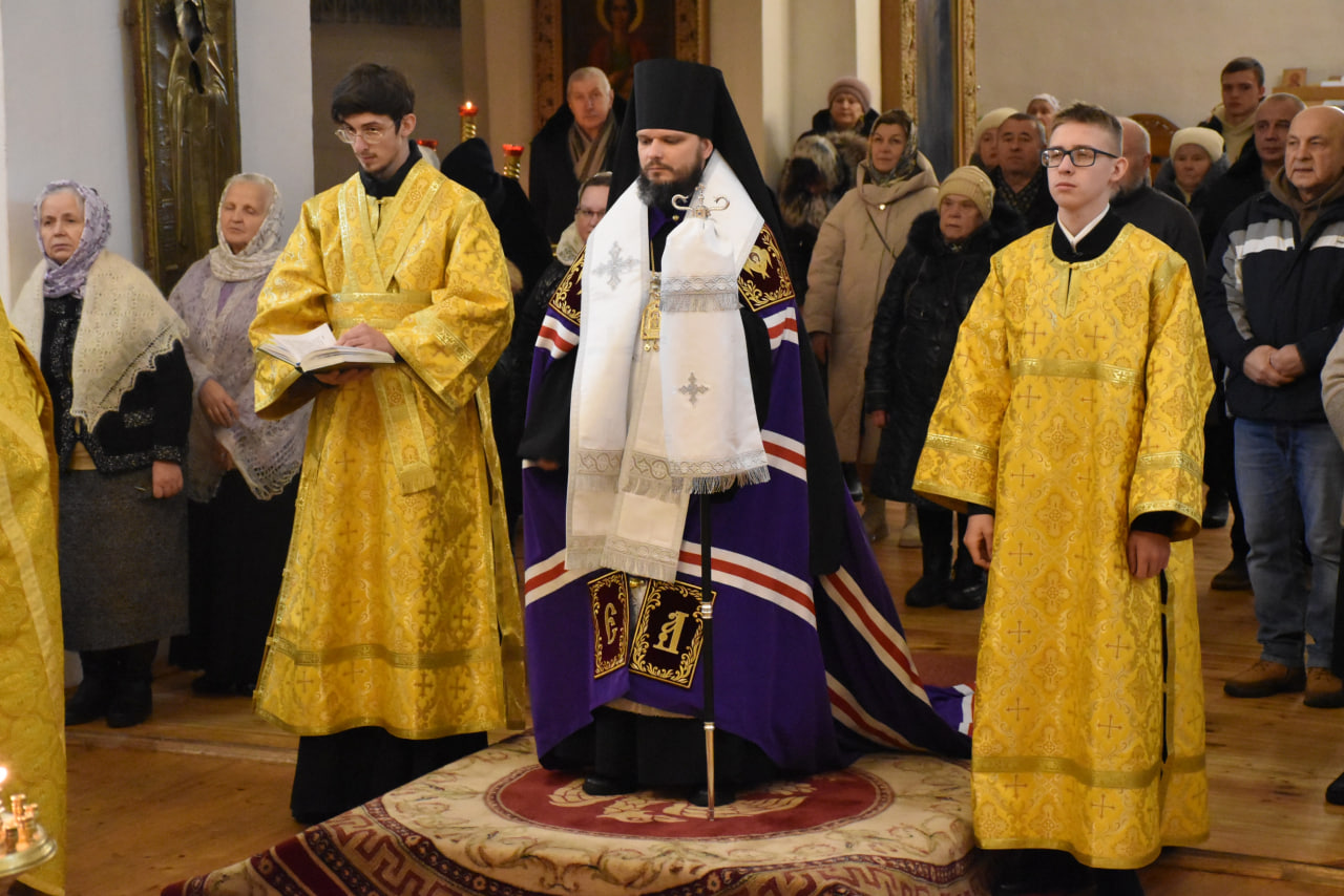 Его Преосвященству сослужили: настоятель Свято-Троицкого кафедрального собора города Вязьмы иерей Александр Курмелёв и штатный клирик собора иерей Владимир Покатов.