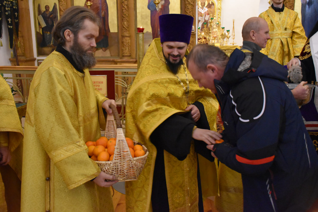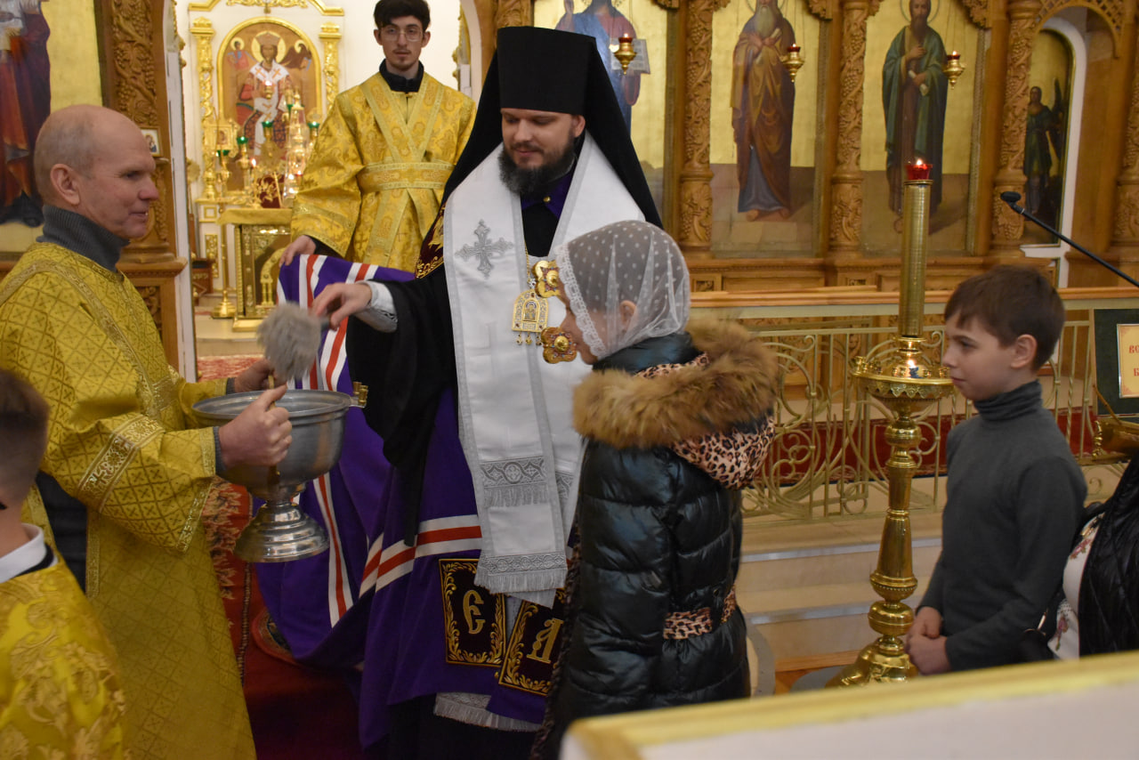 В завершение молебна Преосвященнейший Владыка поздравил духовенство и прихожан с наступающим праздником и окропил всех святой водой.