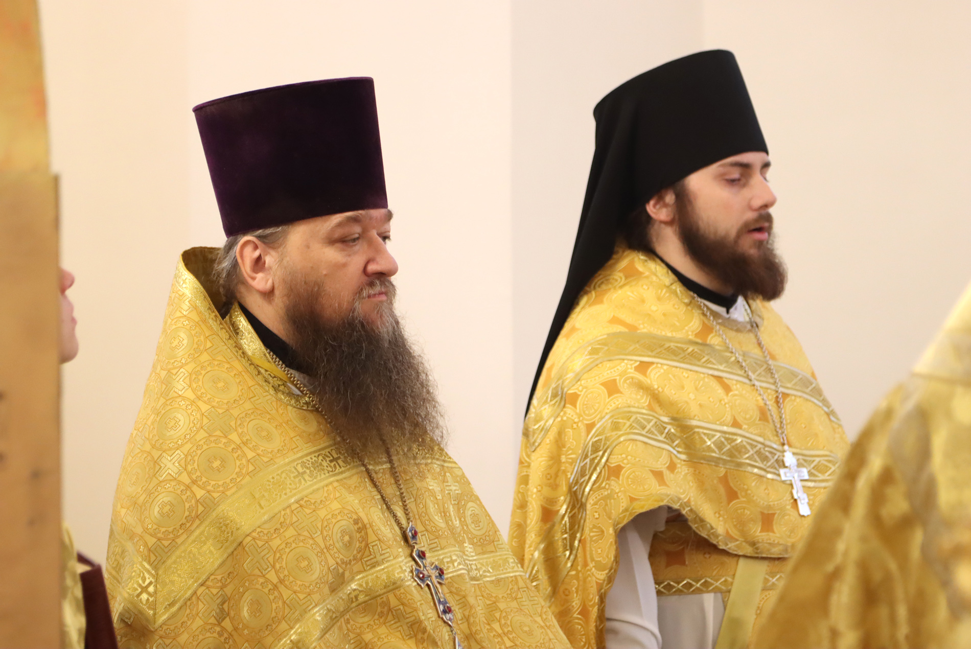 Высокопреосвященнейшему Владыке сослужили настоятель храма в честь апостола Андрея Первозванного города Смоленска протоиерей Андрей Мельничук, клирик Успенского кафедрального собора г. Смоленска протоиерей Михаил Горовой, настоятель храма в честь святого благоверного князя Андрея Смоленского протоиерей Николай Котусев, насельник Спасо-Преображенского Авраамиева мужского монастыря г. Смоленска иеромонах Макарий (Смочук).