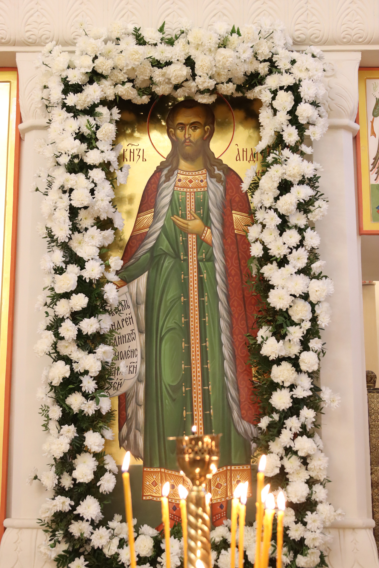9 ноября 2025 года, в Неделю 22-ю по Пятидесятнице, день памяти обретения мощей святого благоверного князя Андрея Смоленского в Переславле-Залесском, митрополит Смоленский и Дорогобужский совершил престольные торжества храма, названного в честь этого святого в микрорайоне Красный Бор города Смоленска.