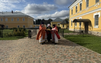 На территории святой обители мощи встречали настоятельница монастыря игумения Фаина (Кулешова) с сестрами.