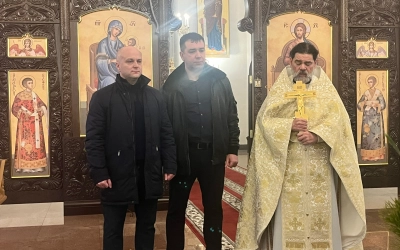 Архимандрит Стефан (Сироштан); священник Благовещенского собора иерей Роман (Ступа).