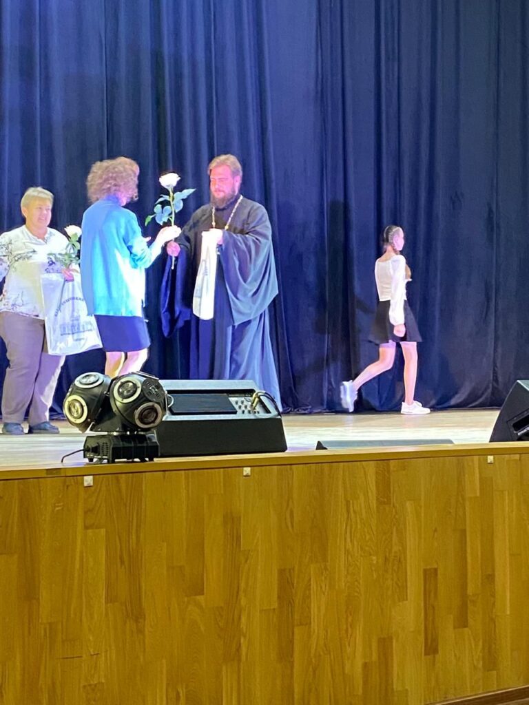 Также отец Сергий зачитал поздравление от архимандрита Александра (Карпикова), в котором были выражены слова благодарности и поддержки в адрес учителей.