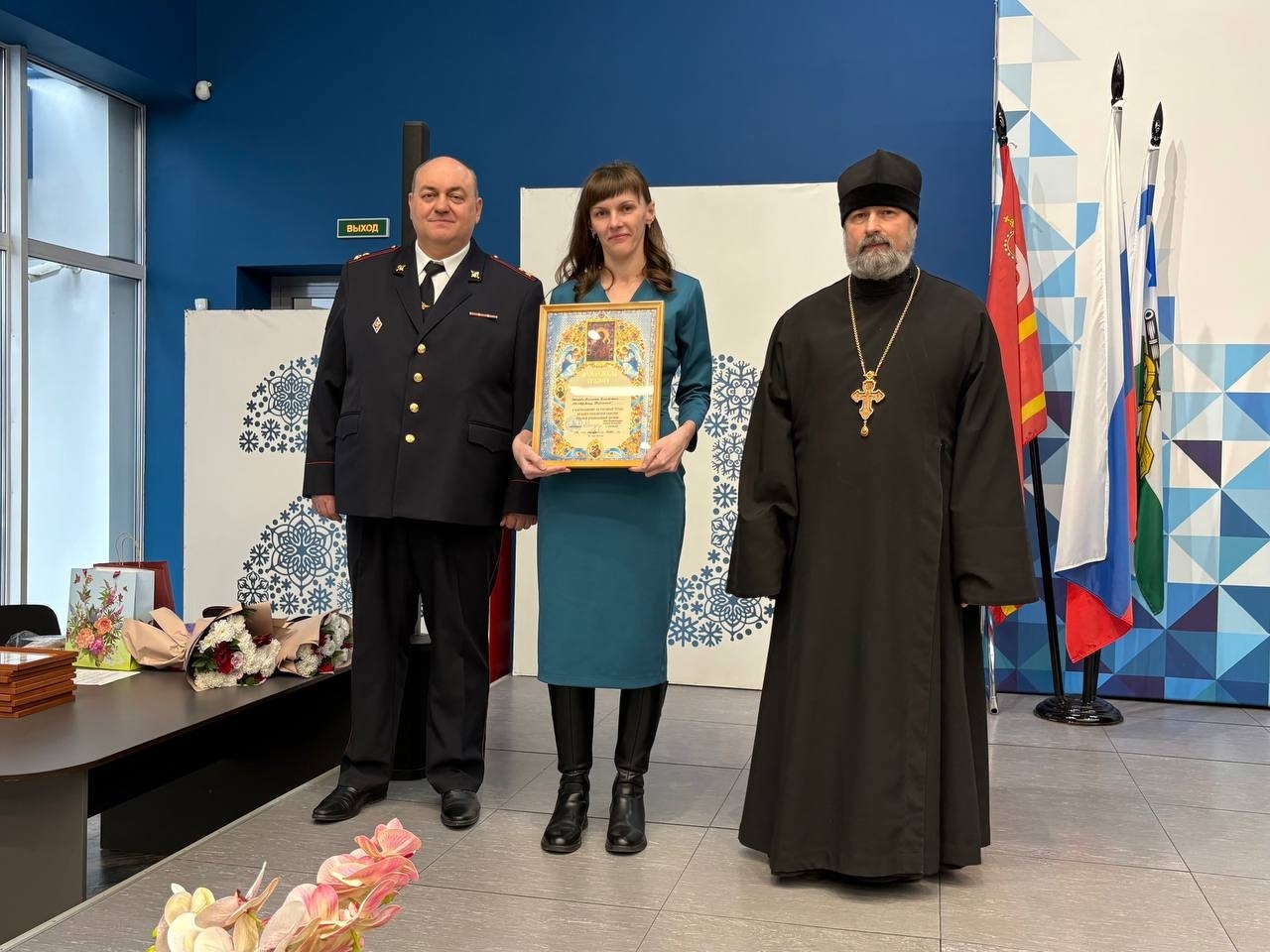 Также по благословению митрополита Смоленского и Дорогобужского Исидора протоиерей Олег Переверзев вручил отличившимся сотрудникам органов внутренних дел архиерейские грамоты.