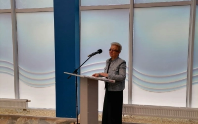 Помощник епархиального архиерея, руководитель отдела социального служения и церковной благотворительности Наталья Владимировна Козлова огласила приветственное слово Высопреосвященнейшего Исидора, митрополита Смоленского и Дорогобужского к участникам августовского совещания: