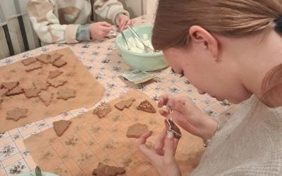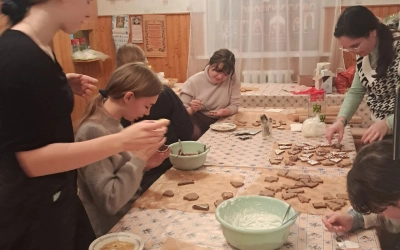 Накануне Рождества Христова учащиеся воскресной школы "Радуга" при Свято-Благовещенском храме города Сычевка испекли и раскрасили имбирные пряники на ярмарку-продажу для прихожан и гостей города.