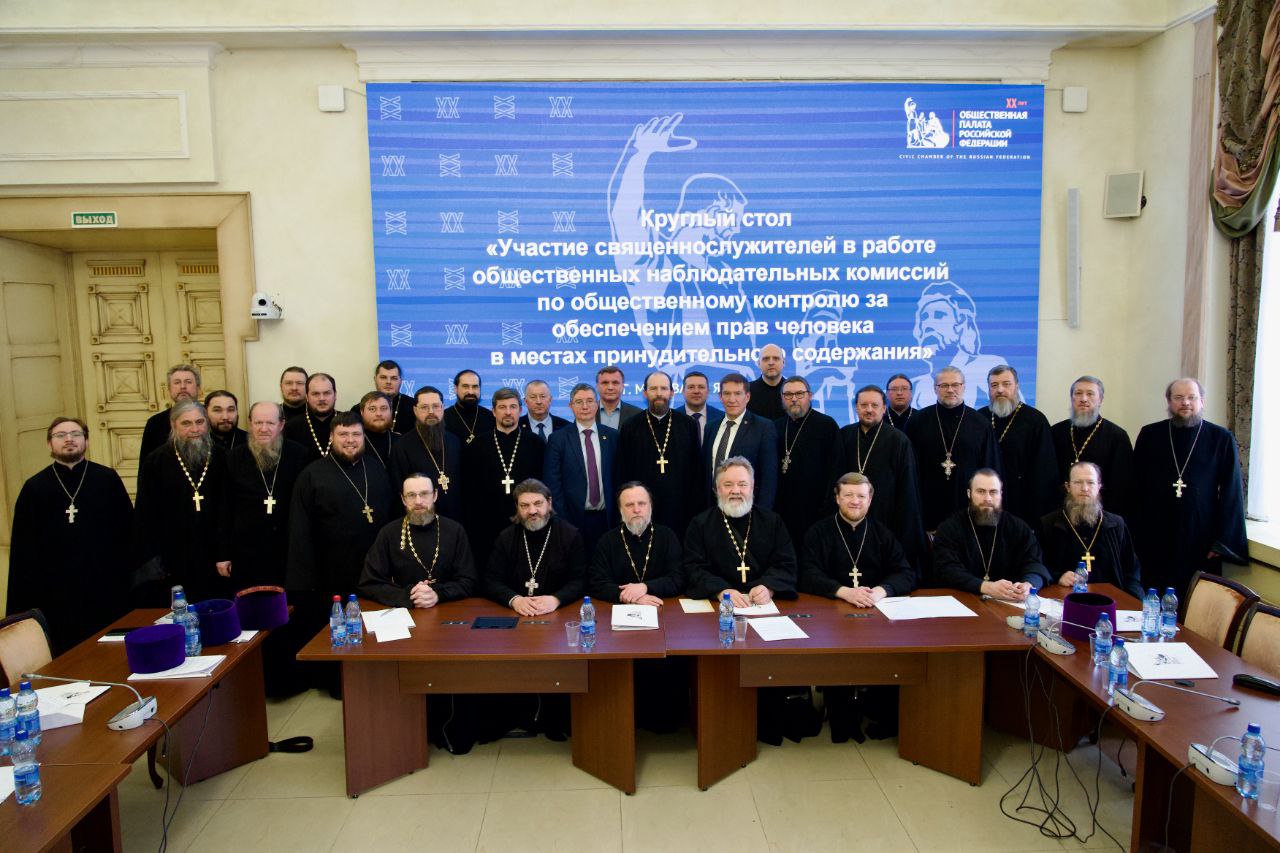 28 января в Общественной палате Российской Федерации состоялось заседание круглого стола, посвященного участию священнослужителей в работе Общественных наблюдательных комиссий по общественному контролю за обеспечением прав человека в местах принудительного содержания. Модераторами круглого стола выступили председатель Синодального отдела по тюремному служению иерей Кирилл Марковский и первый заместитель председателя Комиссии Общественной палаты Российской Федерации по безопасности и взаимодействию с ОНК Александр Воронцов. В мероприятии приняли участие представители руководства Минюста России, ФСИН России, аппарата Уполномоченного по правам человека в РФ, руководители епархиальных отделов по тюремному служению, священники, входящие в состав ОНК.