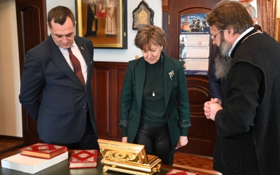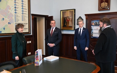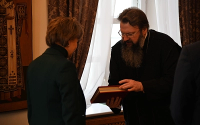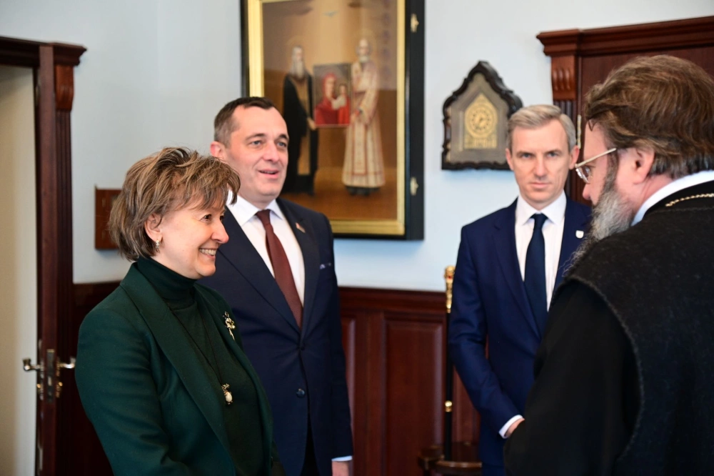После экскурсии по главному кафедральному храму епархии в рабочем кабинете Главы Смоленской митрополии гостей приветствовал митрополит Смоленский и Дорогобужский Исидор. Гости также выразили свою благодарность за теплый прием, отметив значимость истории и архитектуры Смоленска.