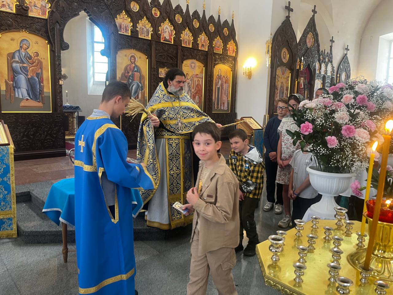 По окончании богослужения всем присутствующим были вручены маленькие иконы Иверской Божией Матери.