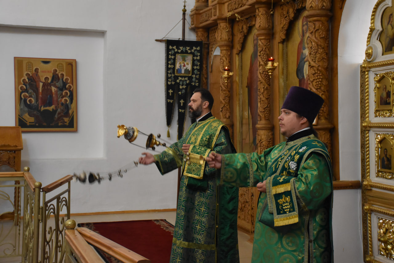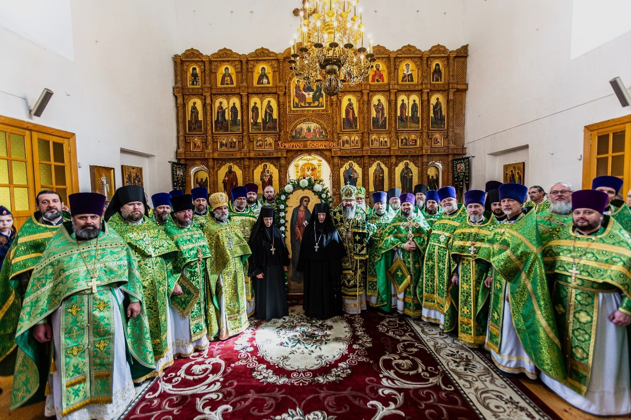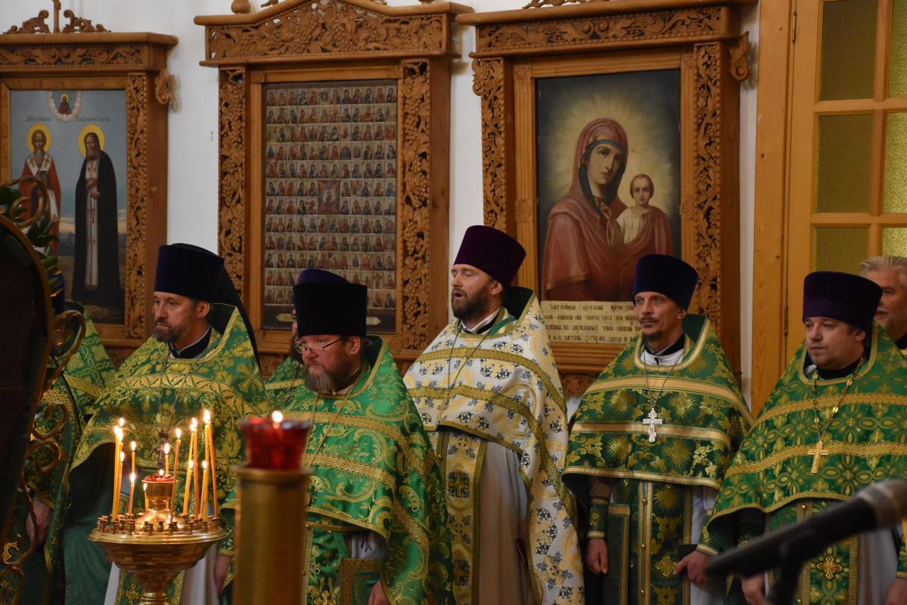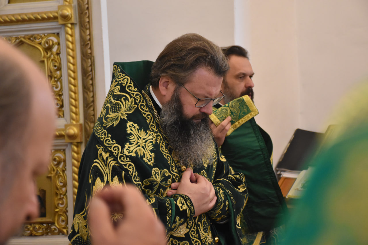 Высокопреосвященнейшему архипастырю сослужили секретарь Вяземского епархиального управления протоиерей Олег Переверзев, благочинный Гагаринского церковного округа архимандрит Александр (Карпиков), благочинный Вяземского церковного округа протоиерей Валерий Калинин, благочинный Угранского церковного округа иерей Александр Курмелев, наместник Свято-Владимирского монастыря на истоке Днепра игумен Тимофей (Ближенский), клирики Вяземской епархии.