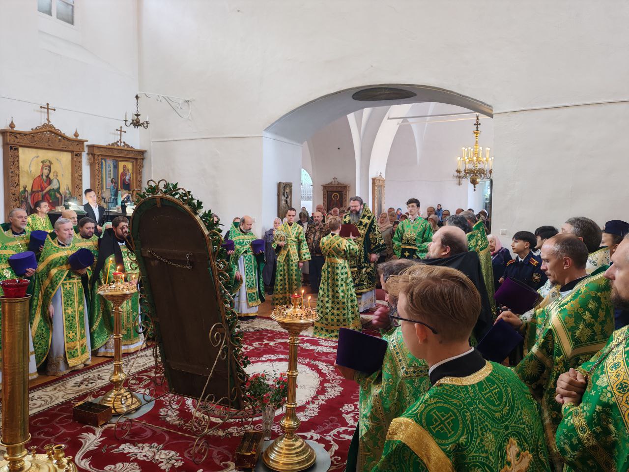 По окончании Божественной литургии Высокопреосвященнейший митрополит Исидор вместе с духовенством и мирянами совершили славление у иконы преподобного Аркадия Вяземского и Новоторжского.