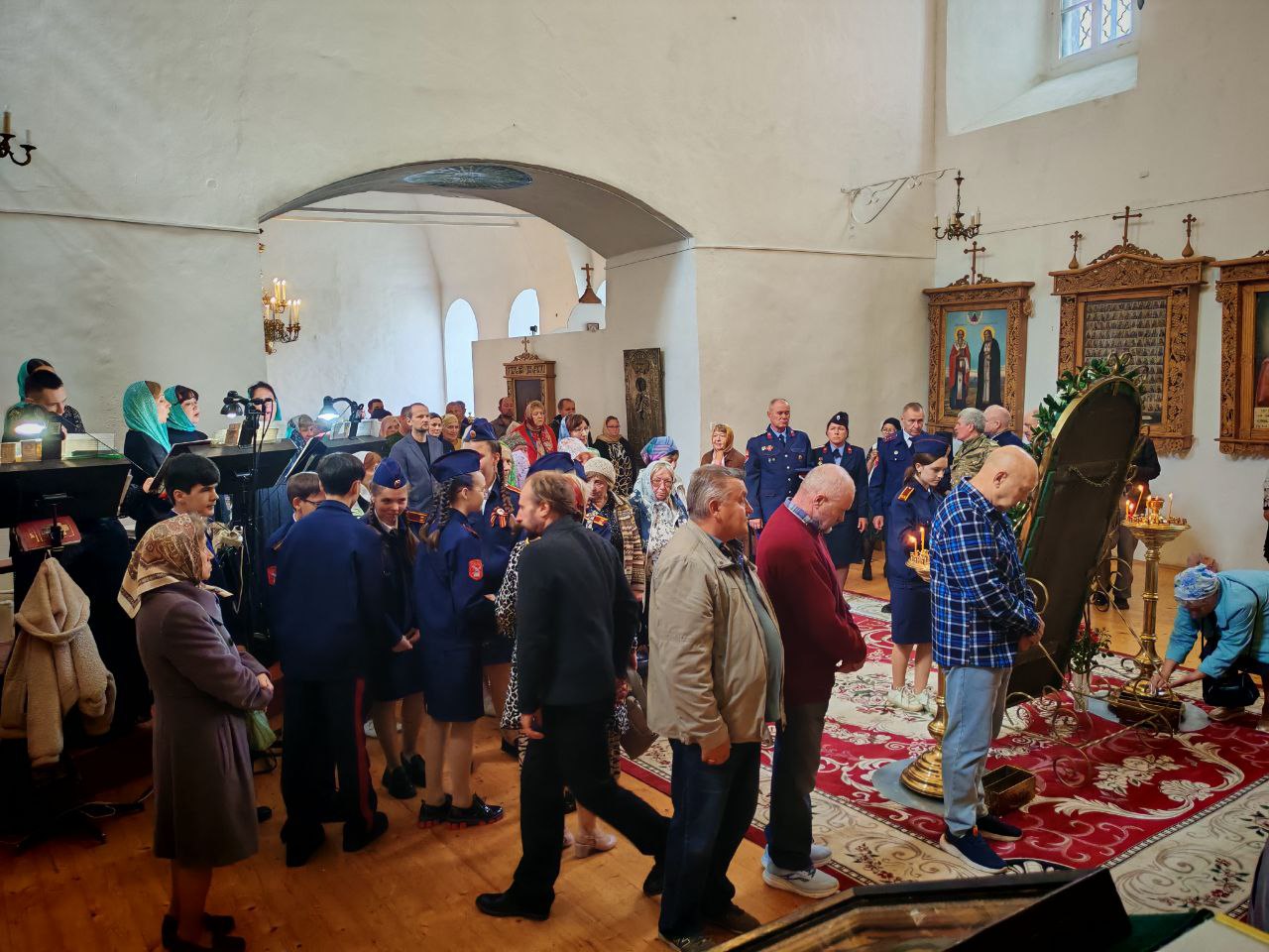 За богослужением молились настоятельница Спасо-Богородицкого Одигитриевского женского монастыря игумения Ангелина (Нестерова), настоятельница Иоанно-Предтеченского женского монастыря игумения Лаврентия (Павлюченкова), прихожане храмов Вяземской епархии, представители казачества, жители и гости города Вязьма.