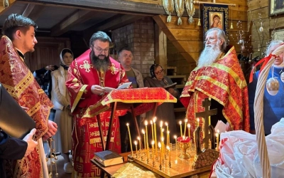 Его Высокопреосвященству сослужили протоиерей Алексий Великопольский и иерей Константин Гарин.