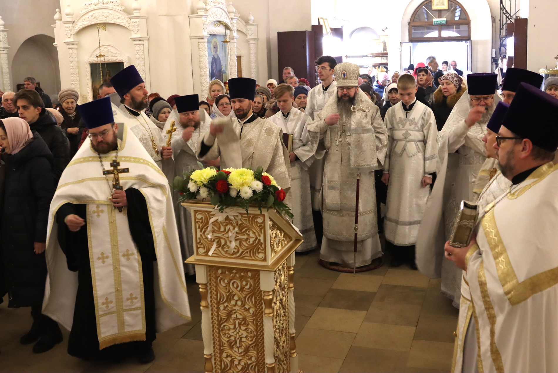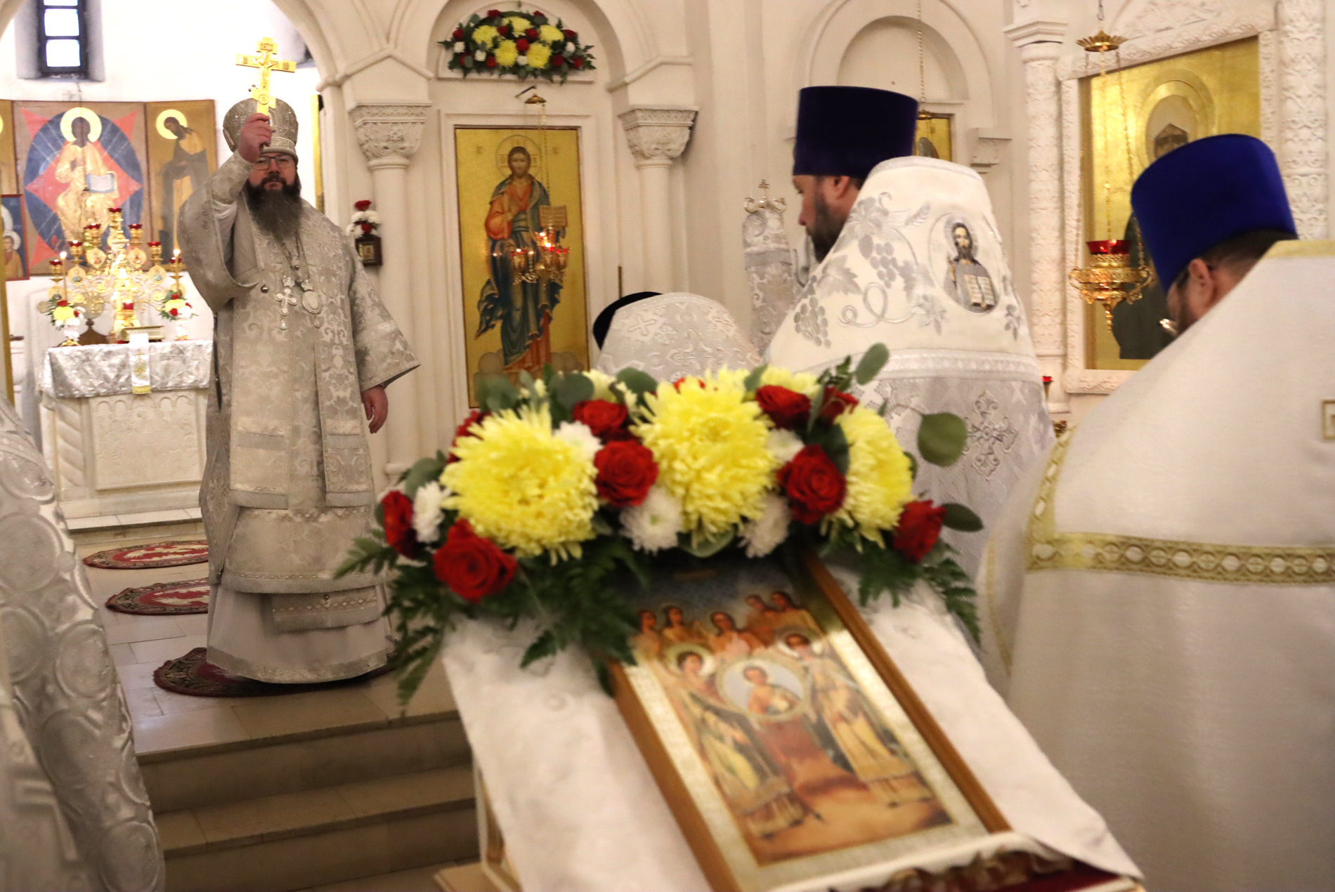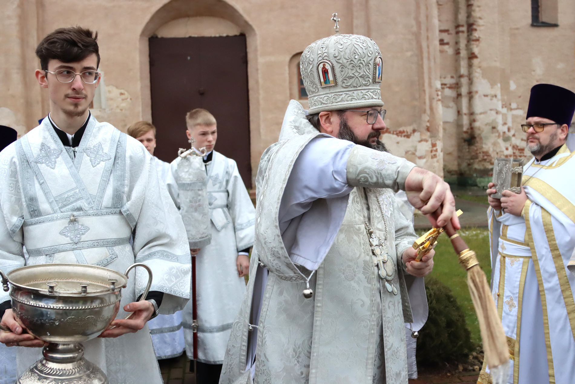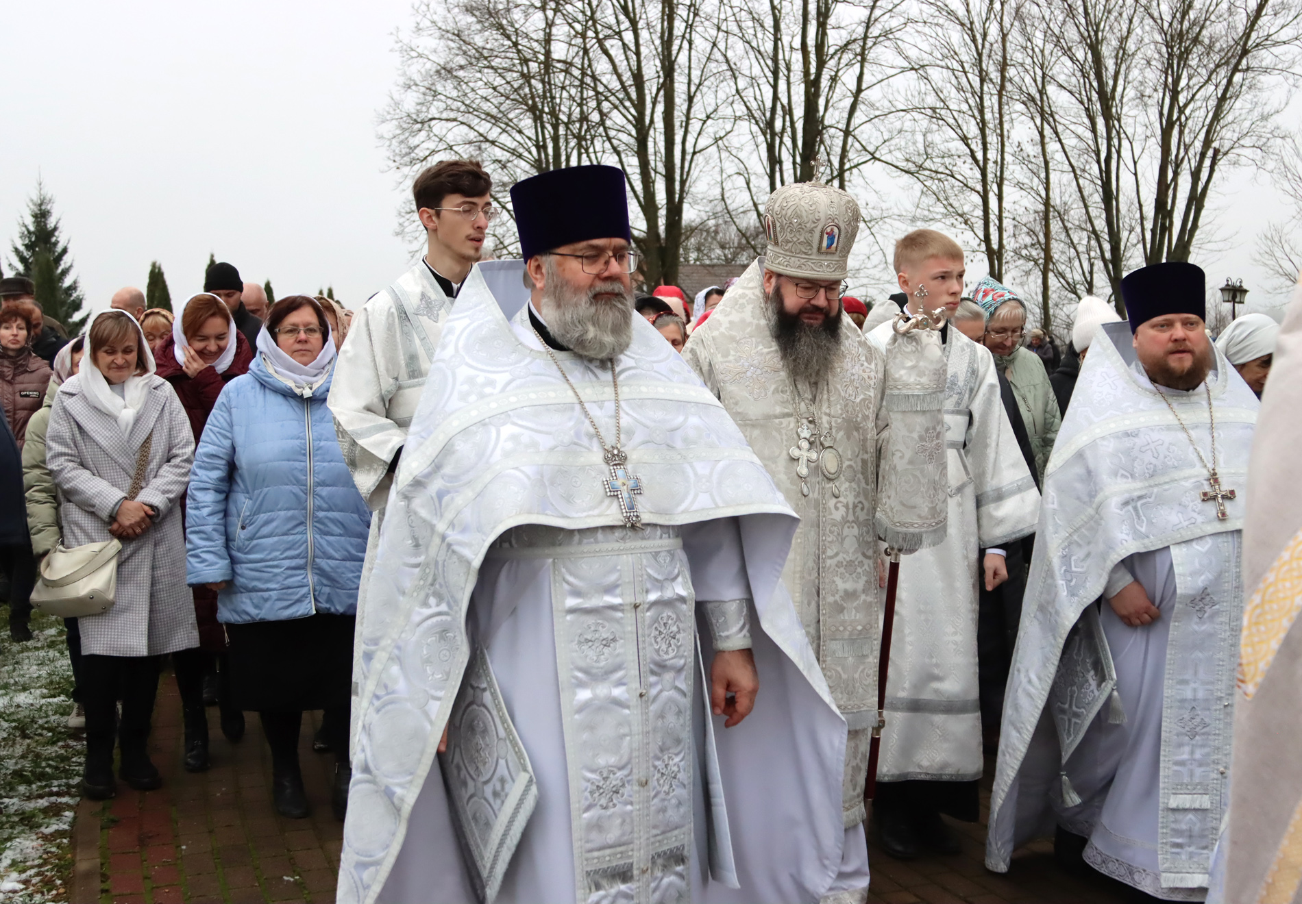 По окончании Божественной литургии, после Святого Причащения, был совершен крестный ход вокруг храма. На церковном дворе, у могилы протоиерея Михаила Каденкова, архипастырь в сослужении духовенства совершил панихиду.
