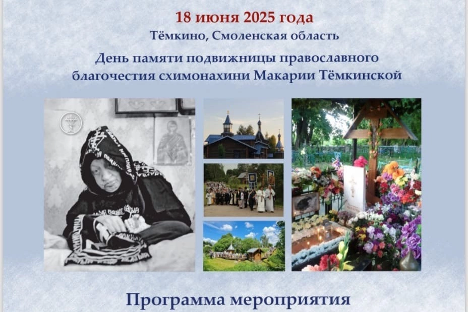 В среду, 18 июня 2025 года, в Духовно-Культурном Центре имени схимонахини Макарии Тëмкинской пройдут мероприятия, посвящённые Дню памяти выдающейся подвижницы благочестия.