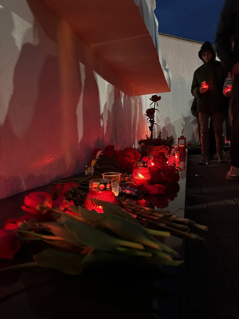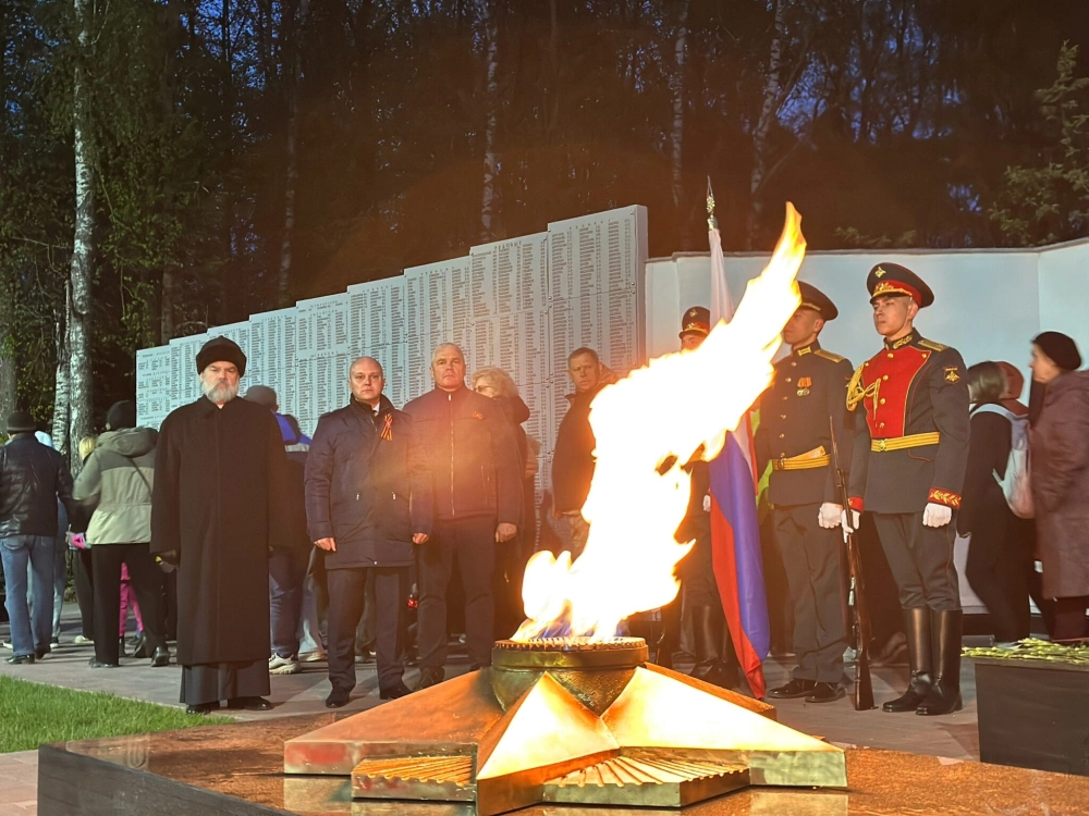 Гагаринцы почтили своих героев, оставив зажженные свечи у места памяти. После торжественного открытия с поздравительным и словом к присутствующим обратился Архимандрит Александр (Карпиков):