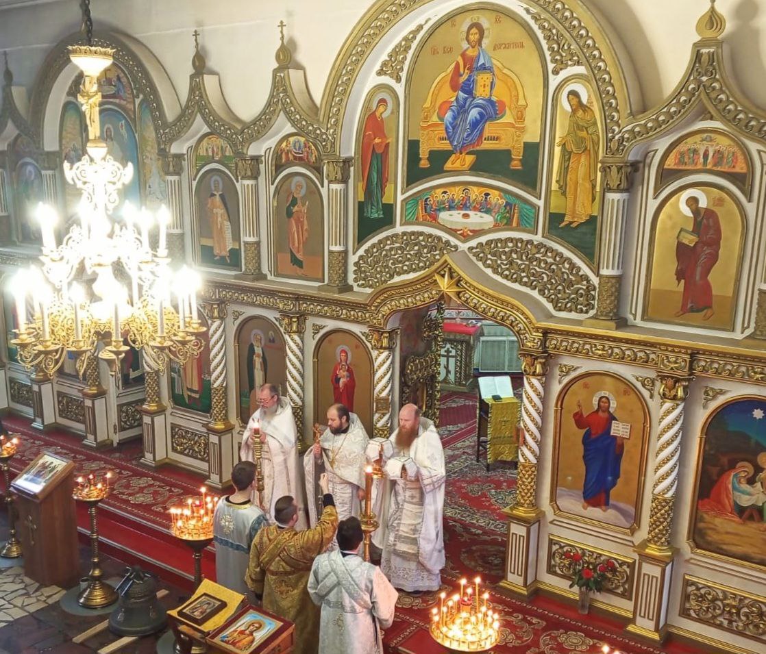 Отцу благочинному сослужили настоятель храма в честь пророка Божия Илии иерей Иоанн Цыбульский и клирик храма Рождества Христова иерей Андрей Быков.
