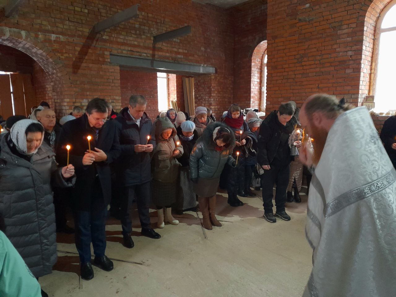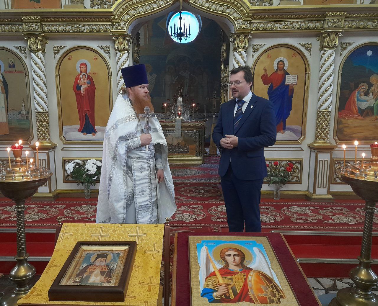 После Божественной литургии в строящемся храме в честь Архистратига Михаила состоялся праздничный молебен. Иерей Сергий Чайкин, ответственный за строительство храма, возглавил богослужение в сослужении настоятеля храма в честь иконы Божией Матери «Достойно есть» протоиерея Сергия Зеленкова, настоятеля храма в честь пророка Божия Илии иерея Иоанна Цыбульского и клирика храма Рождества Христова иерея Андрея Быкова. На праздничном молебне присутствовали: исполняющий полномочия Главы муниципального образования «Сафоновский муниципальный округ» Смоленской области Антон Николаевич Кухарев, депутаты Сафоновского муниципального округа, ктитор храма Галина Ивановна Яблонская.