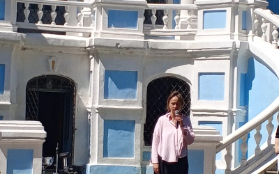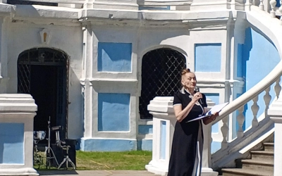 Затем на территории музея А. С. Грибоедова прошло открытие праздника. Отец Александр обратился к присутствующим с поздравление, обратив внимание на заслуги перед Отечеством и патриотизм Павла Степановича Нахимова.