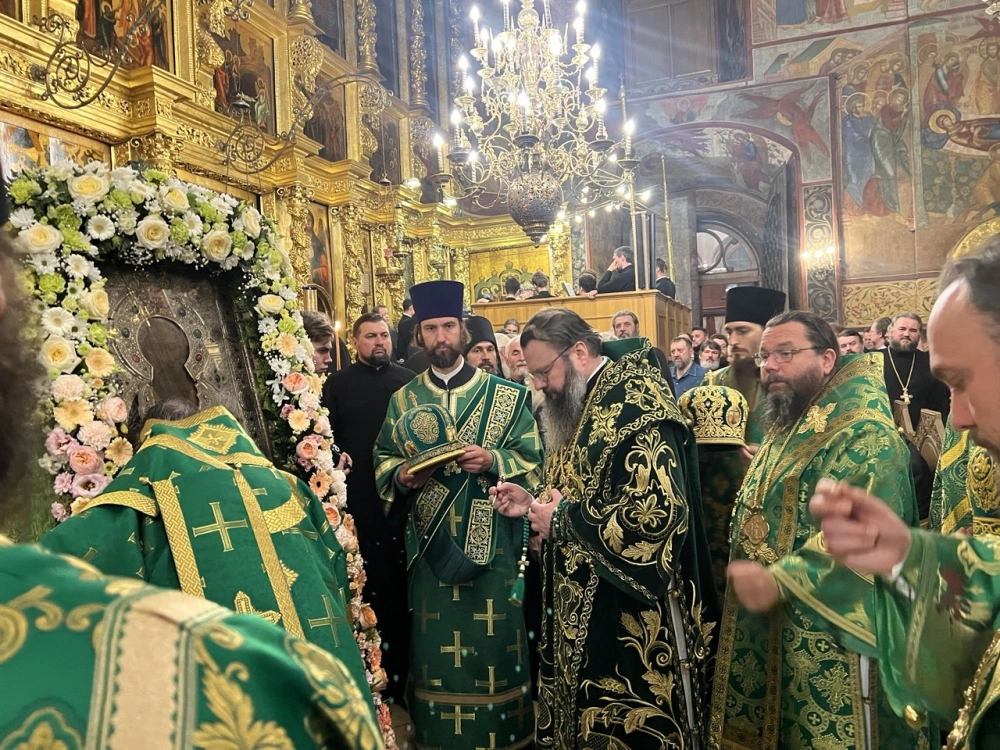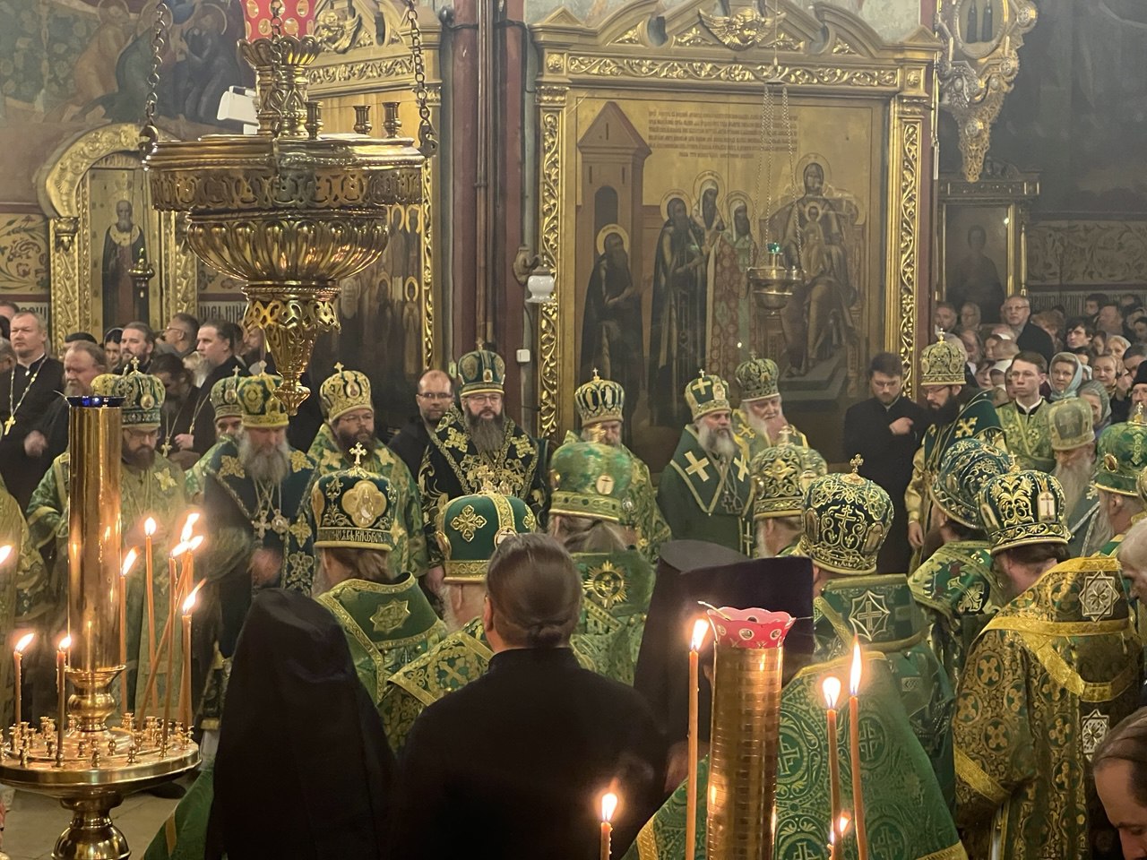 В храме молились архиереи, настоятельницы женских монастырей, священнослужители, монашествующие и паломники, прибывшие на торжества в лавру.