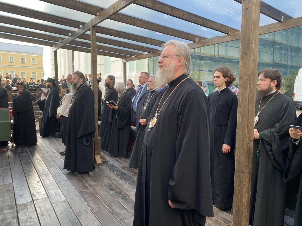 Торжественное богослужение совершалось перед чтимой иконой преподобного Сергия. Для совершения праздничных всенощного бдения и Божественной литургии на Соборной площади устроен помост, а перед Успенским собором Лавры установлен престол под сенью.